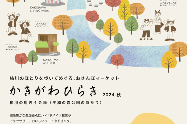 柿川周辺の幾つかの拠点を歩いて楽しむさんぽ型マーケット。各拠点では雑貨や野菜の販売があったり、カフェなど簡単な飲食が楽しめるようになっていたり、ワークショップや体験会が行われる予定です。