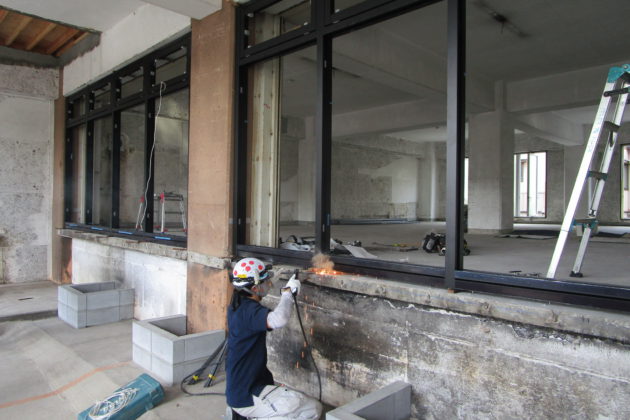 サッシも届き、入れ替えを行っていきます。