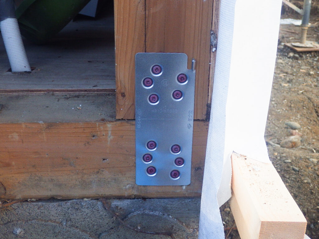 柱に耐震金具を取り付けたところです。