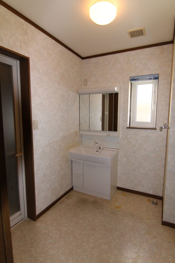 次に、洗面・脱衣所。洗濯用水栓もあります。
